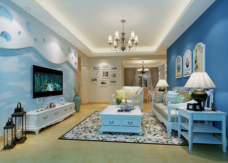 歐式風(fēng)格三居藍色海岸